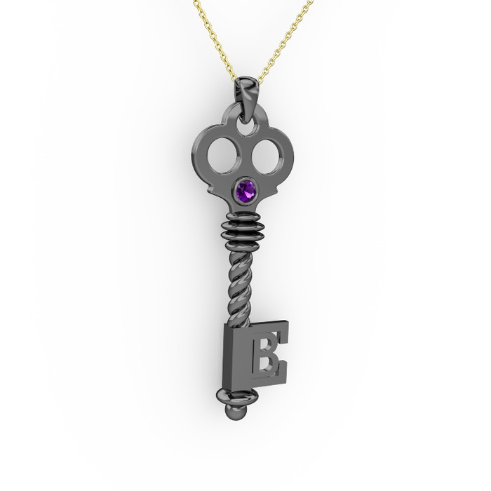 Ametist 925 ayar siyah rodyum kaplama gümüş kolye (40 cm altın rolo zincir)