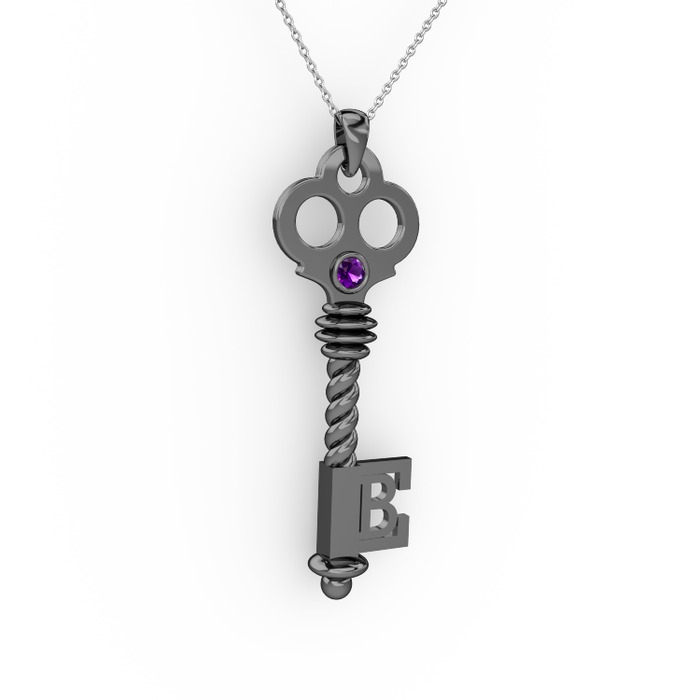 Ametist 925 ayar siyah rodyum kaplama gümüş kolye (40 cm beyaz altın rolo zincir)