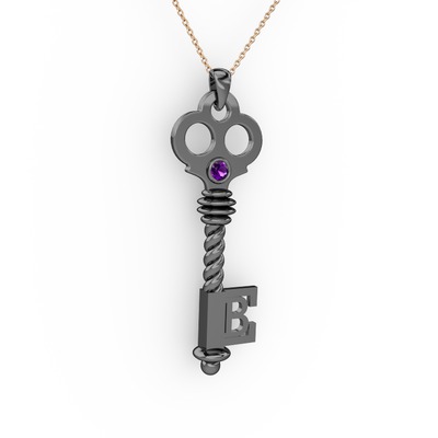 Ametist 925 ayar siyah rodyum kaplama gümüş kolye (40 cm rose altın rolo zincir)