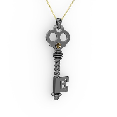 Dumanlı kuvars 925 ayar siyah rodyum kaplama gümüş kolye (40 cm altın rolo zincir)