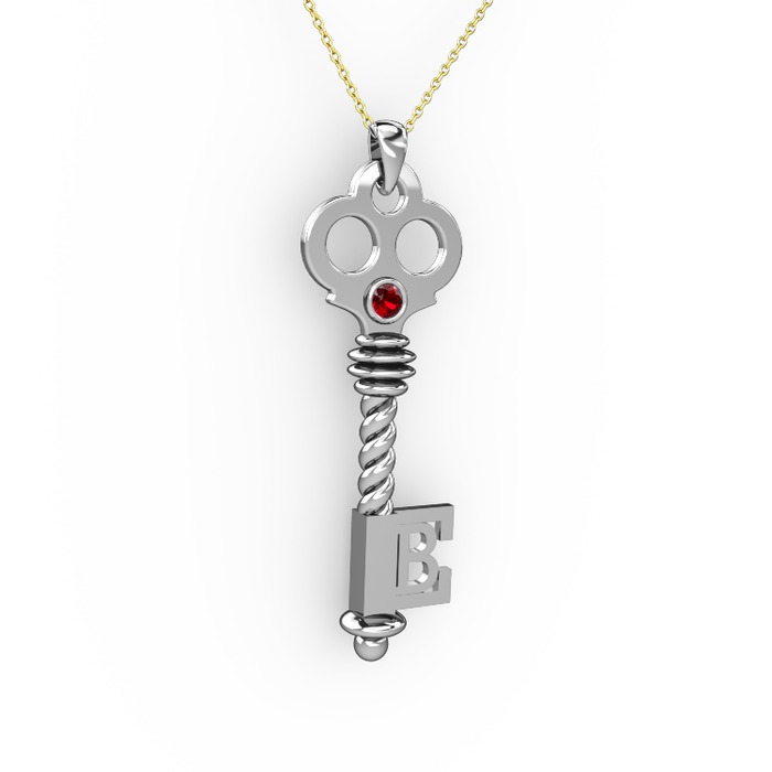Garnet 14 ayar beyaz altın kolye (40 cm altın rolo zincir)