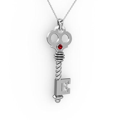 Garnet 18 ayar beyaz altın kolye (40 cm gümüş rolo zincir)