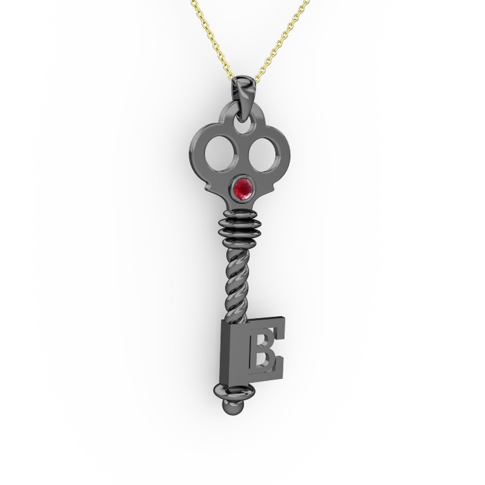 Kök yakut 925 ayar siyah rodyum kaplama gümüş kolye (40 cm gümüş rolo zincir)