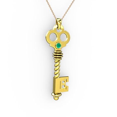 Kök zümrüt 8 ayar altın kolye (40 cm gümüş rolo zincir)