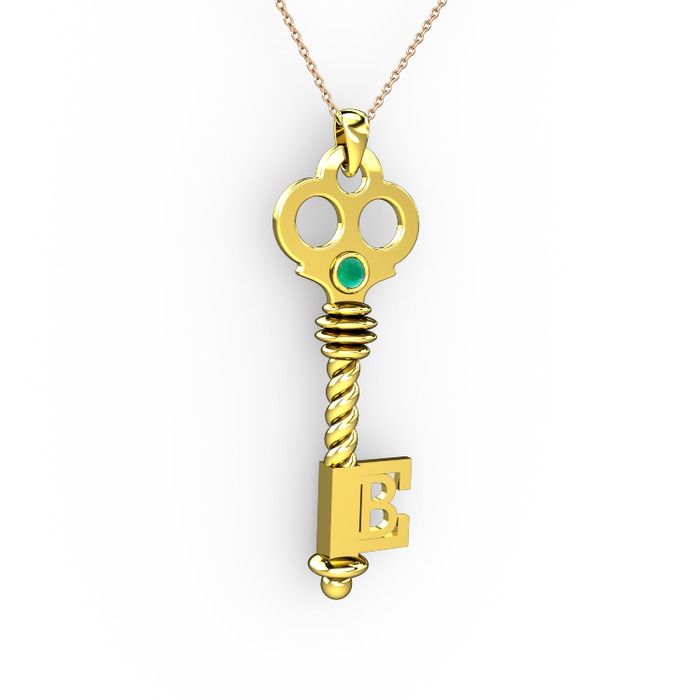 Kök zümrüt 8 ayar altın kolye (40 cm rose altın rolo zincir)