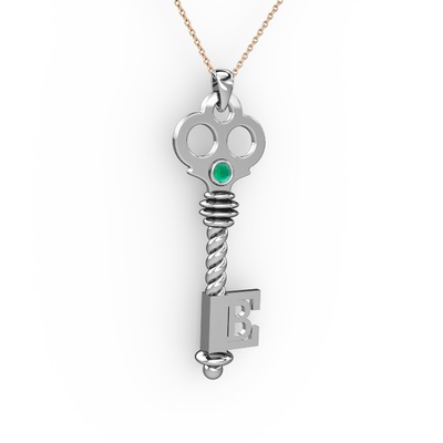Kök zümrüt 8 ayar beyaz altın kolye (40 cm rose altın rolo zincir)