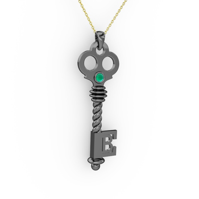 Kök zümrüt 925 ayar siyah rodyum kaplama gümüş kolye (40 cm gümüş rolo zincir)