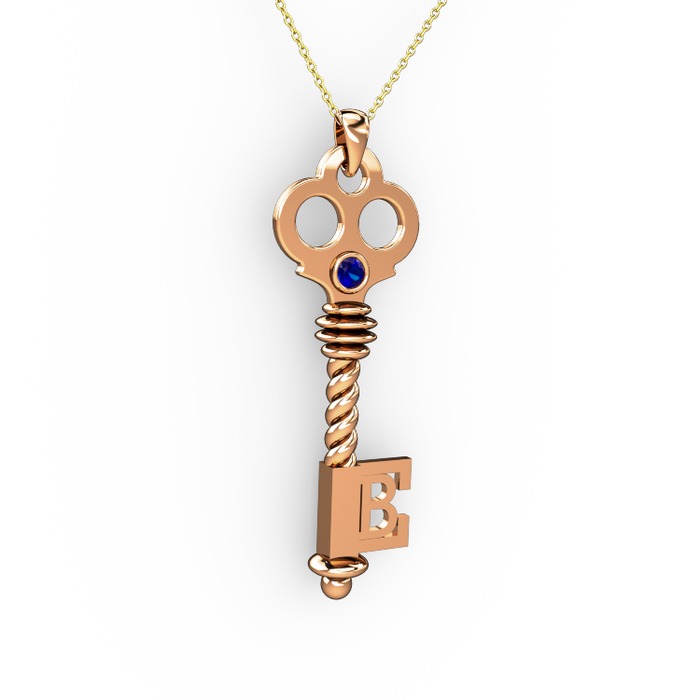 Lab safir 14 ayar rose altın kolye (40 cm gümüş rolo zincir)