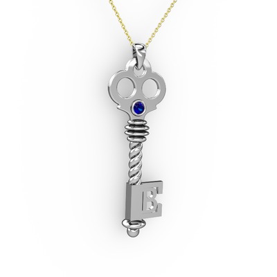 Lab safir 18 ayar beyaz altın kolye (40 cm altın rolo zincir)