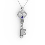 Lab safir 18 ayar beyaz altın kolye (40 cm beyaz altın rolo zincir)