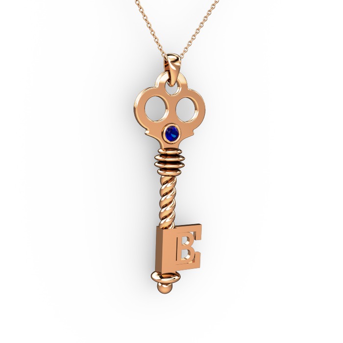 Lab safir 925 ayar rose altın kaplama gümüş kolye (40 cm rose altın rolo zincir)