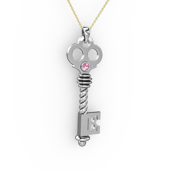 Pembe kuvars 925 ayar gümüş kolye (40 cm altın rolo zincir)