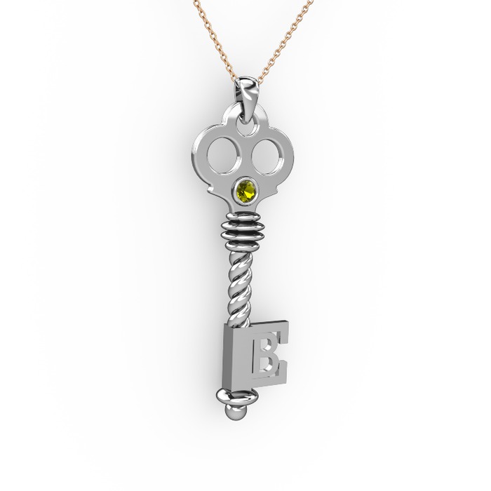 Peridot 8 ayar beyaz altın kolye (40 cm rose altın rolo zincir)