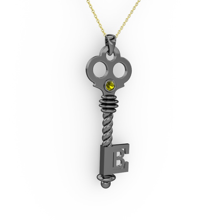 Peridot 925 ayar siyah rodyum kaplama gümüş kolye (40 cm altın rolo zincir)
