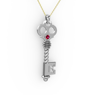 Rodolit garnet 18 ayar beyaz altın kolye (40 cm altın rolo zincir)