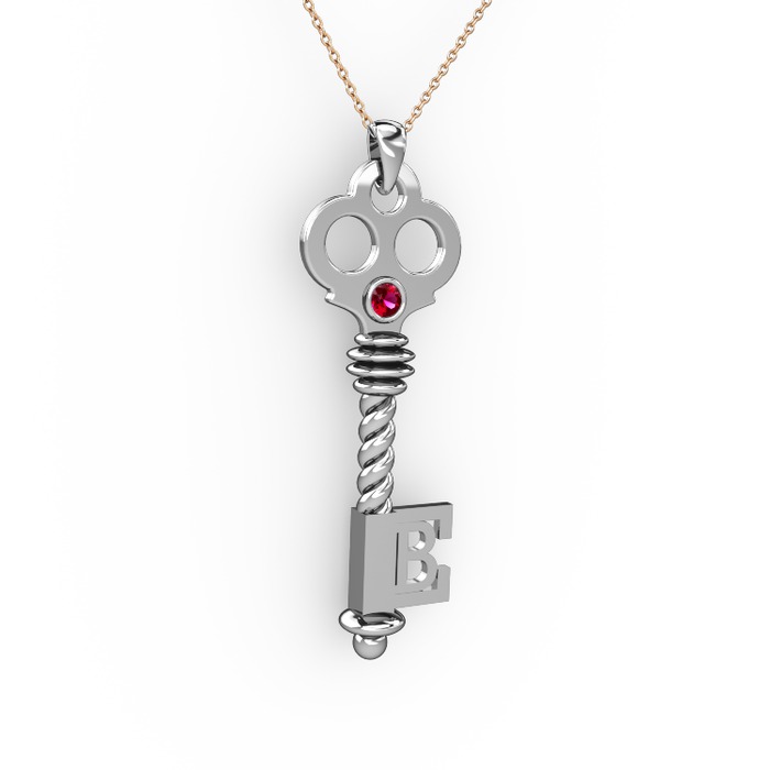 Rodolit garnet 18 ayar beyaz altın kolye (40 cm gümüş rolo zincir)