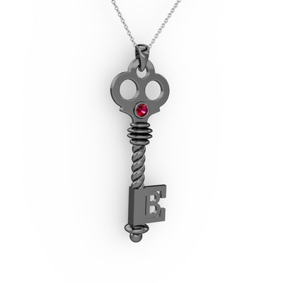Rodolit garnet 925 ayar siyah rodyum kaplama gümüş kolye (40 cm beyaz altın rolo zincir)