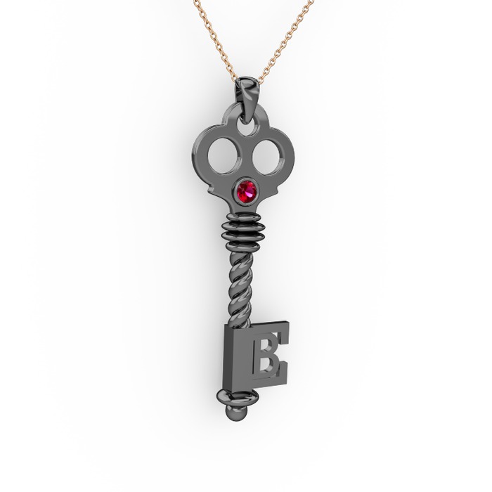 Rodolit garnet 925 ayar siyah rodyum kaplama gümüş kolye (40 cm rose altın rolo zincir)