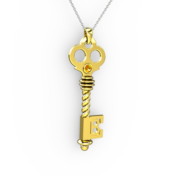 Sitrin 14 ayar altın kolye (40 cm gümüş rolo zincir)