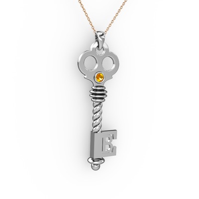 Sitrin 14 ayar beyaz altın kolye (40 cm rose altın rolo zincir)