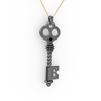 Siyah zirkon 925 ayar siyah rodyum kaplama gümüş kolye (40 cm altın rolo zincir)