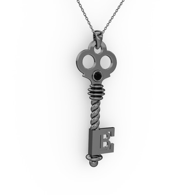 Siyah zirkon 925 ayar siyah rodyum kaplama gümüş kolye (40 cm gümüş rolo zincir)