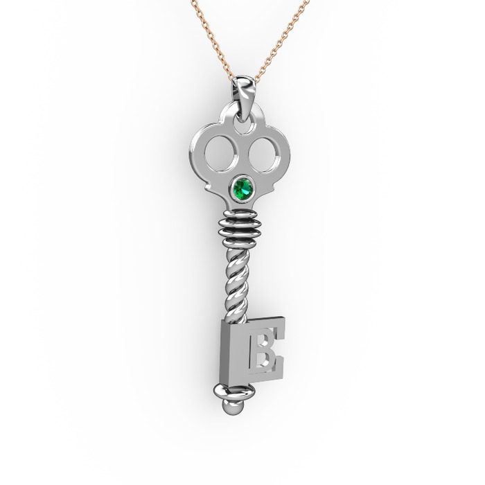 Yeşil kuvars 14 ayar beyaz altın kolye (40 cm rose altın rolo zincir)