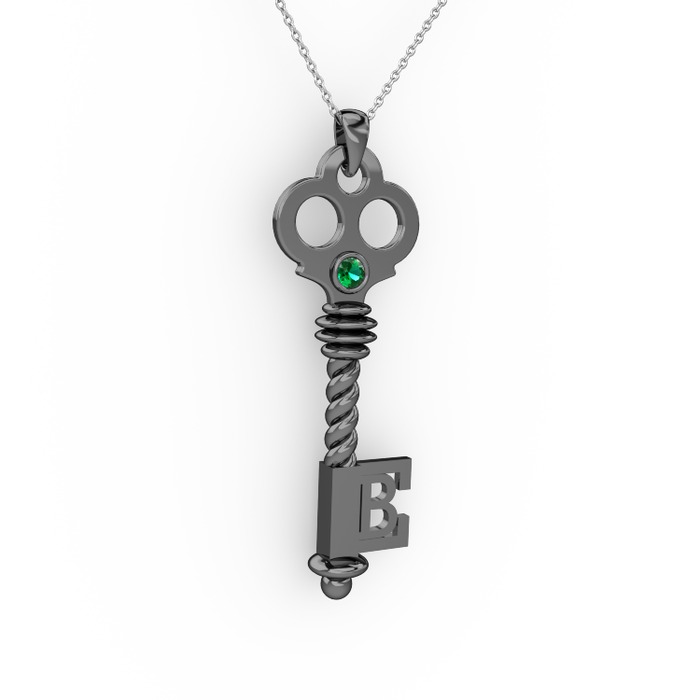 Yeşil kuvars 925 ayar siyah rodyum kaplama gümüş kolye (40 cm beyaz altın rolo zincir)