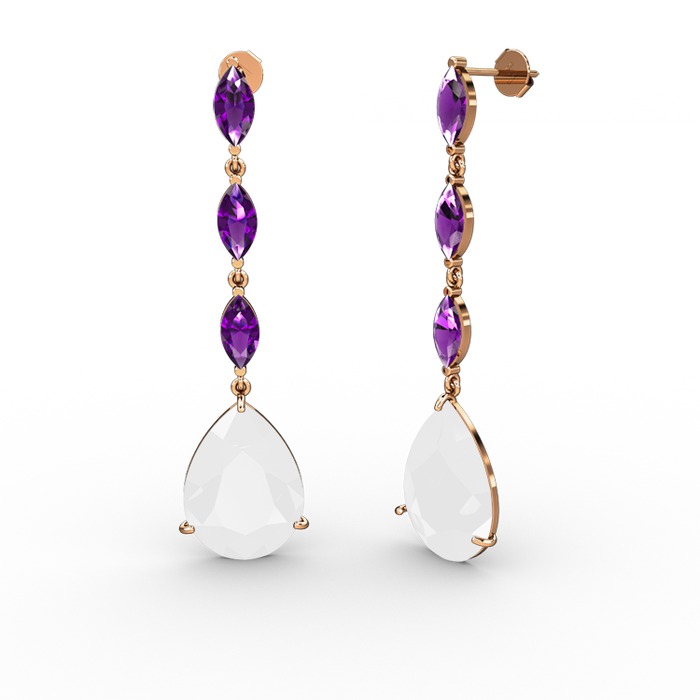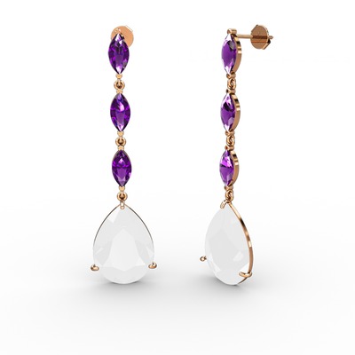 Beyaz akrilik ve ametist 8 ayar rose altın küpe