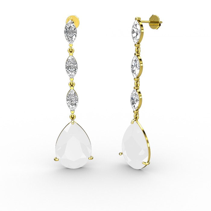 Beyaz akrilik ve beyaz zirkon 14 ayar altın küpe