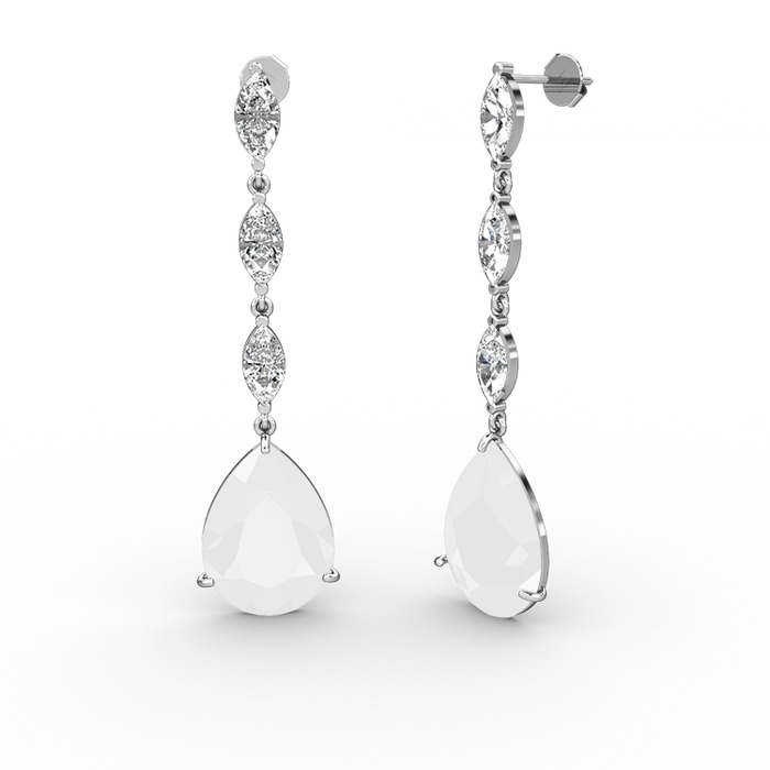 Beyaz akrilik ve beyaz zirkon 8 ayar beyaz altın küpe