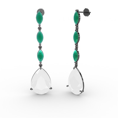Beyaz akrilik ve kök zümrüt 925 ayar siyah rodyum kaplama gümüş küpe