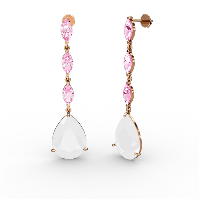 Beyaz akrilik ve pembe kuvars 8 ayar rose altın küpe