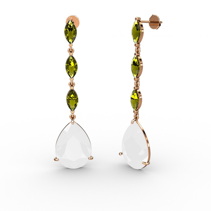 Beyaz akrilik ve peridot 14 ayar rose altın küpe