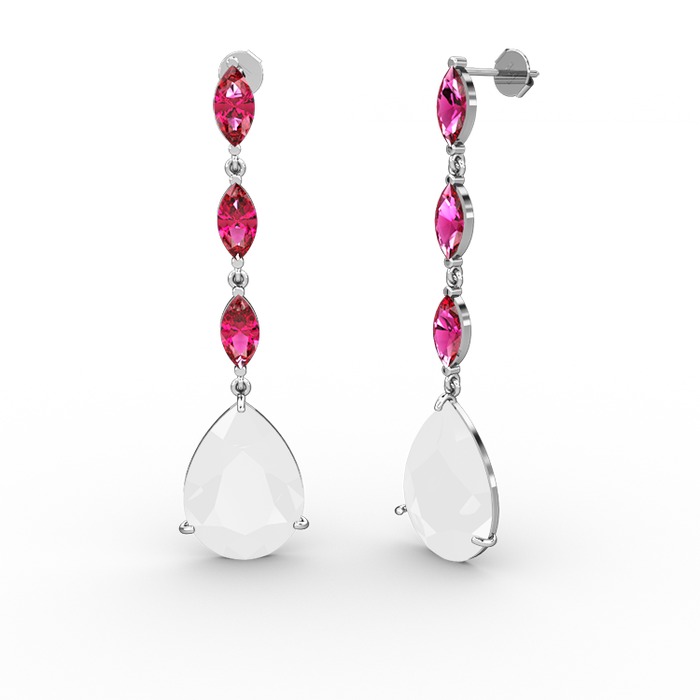 Beyaz akrilik ve rodolit garnet 14 ayar beyaz altın küpe