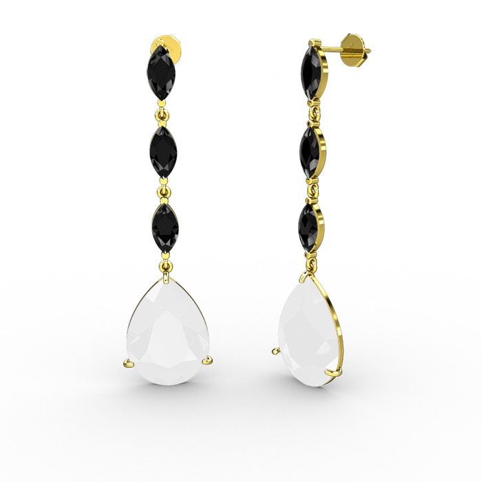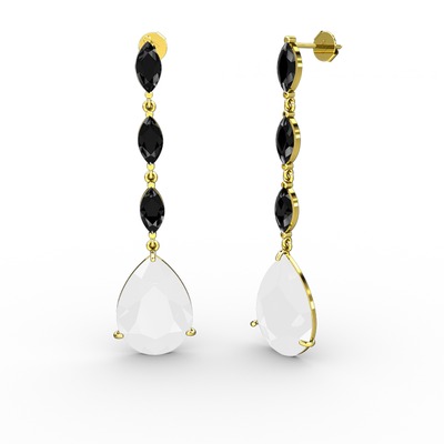 Beyaz akrilik ve siyah zirkon 8 ayar altın küpe