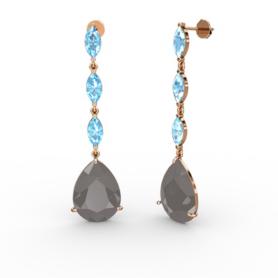 Füme akrilik ve akuamarin 8 ayar rose altın küpe