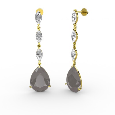 Füme akrilik ve beyaz zirkon 8 ayar altın küpe