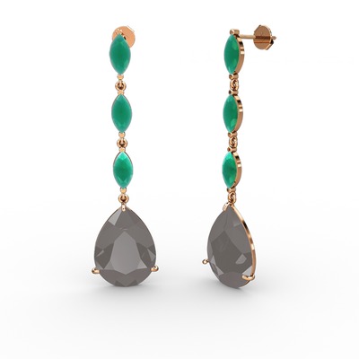 Füme akrilik ve kök zümrüt 8 ayar rose altın küpe