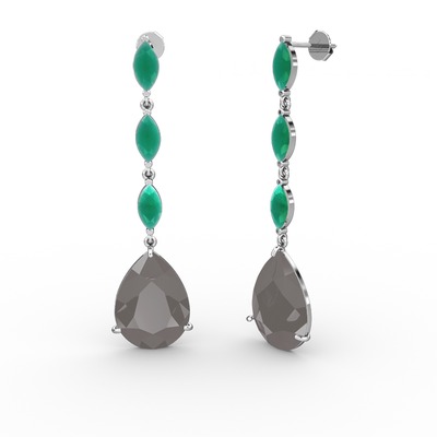 Füme akrilik ve kök zümrüt 925 ayar gümüş küpe