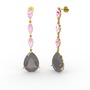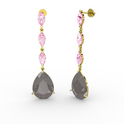 Füme akrilik ve pembe kuvars 925 ayar altın kaplama gümüş küpe