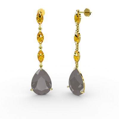 Füme akrilik ve sitrin 18 ayar altın küpe