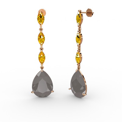 Füme akrilik ve sitrin 8 ayar rose altın küpe