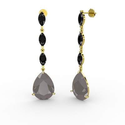 Füme akrilik ve siyah zirkon 8 ayar altın küpe