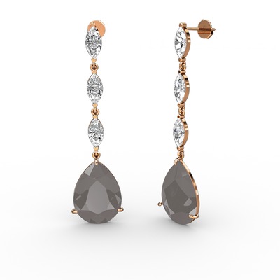 Füme akrilik ve swarovski 18 ayar rose altın küpe