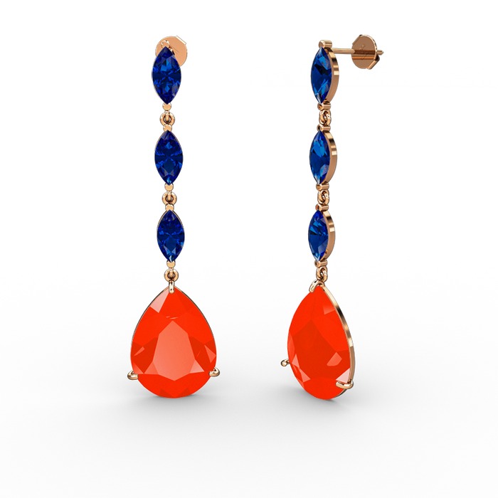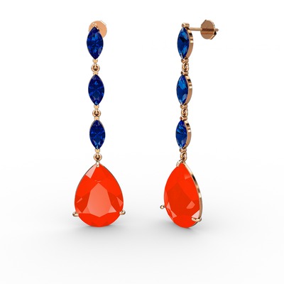 Kırmızı akrilik ve lab safir 8 ayar rose altın küpe