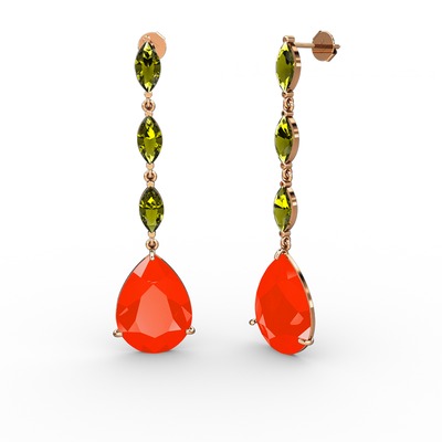 Kırmızı akrilik ve peridot 8 ayar rose altın küpe