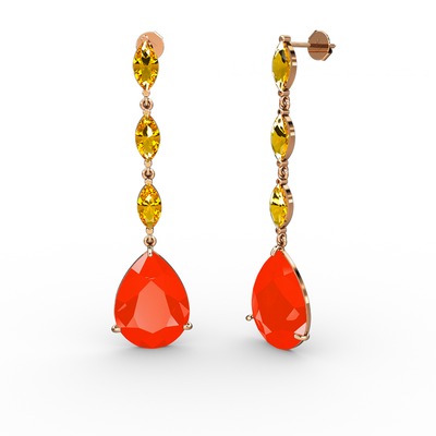 Kırmızı akrilik ve sitrin 925 ayar rose altın kaplama gümüş küpe