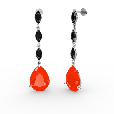Kırmızı akrilik ve siyah zirkon 925 ayar gümüş küpe