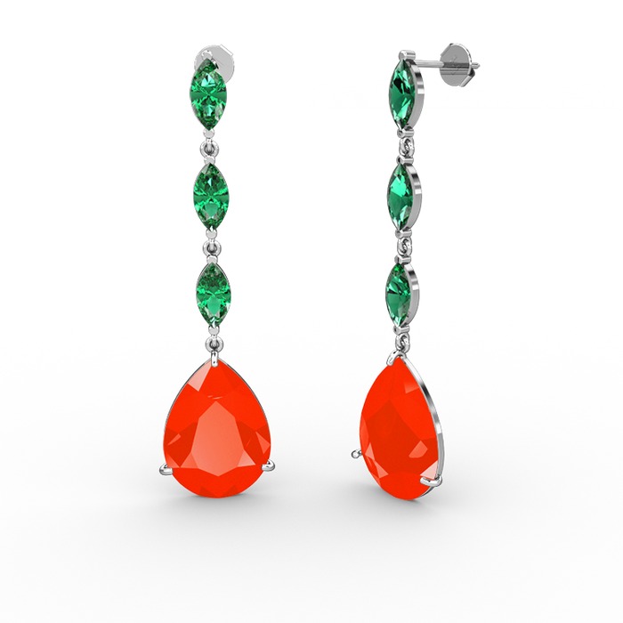 Kırmızı akrilik ve yeşil kuvars 18 ayar beyaz altın küpe